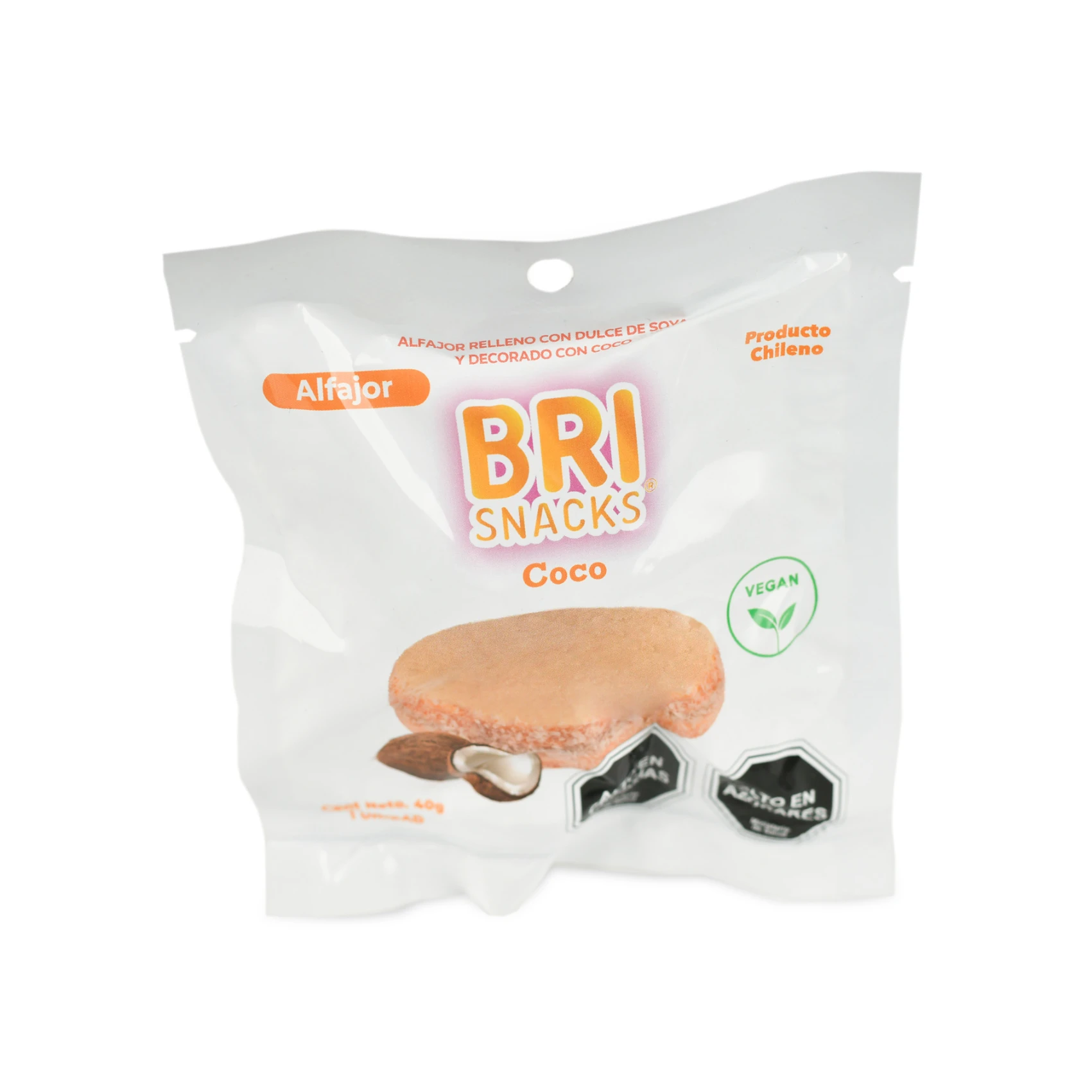 Relleno con un exquisito dulce de soya traido de Brasil, este alfajor es ideal para acompañar de un buen café.