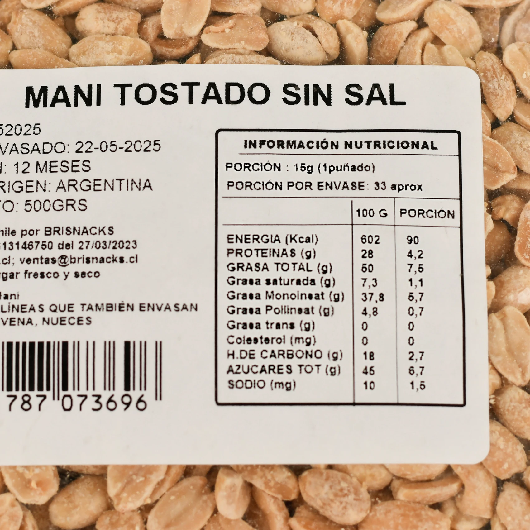 ¡Disfruta del sabor único y crujiente del maní tostado sin sal!