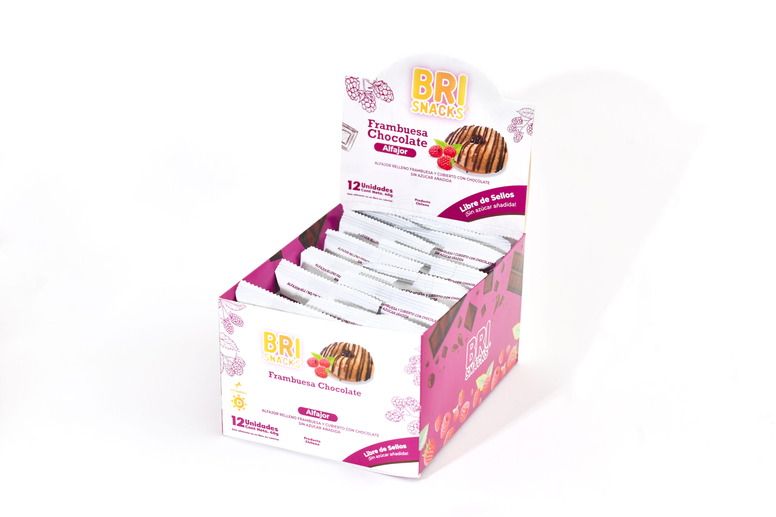 El pack lleva: 1 caja display alfajor chocolate, 1 caja display alfajor coco, 2 cajas display delicia frambuesa.